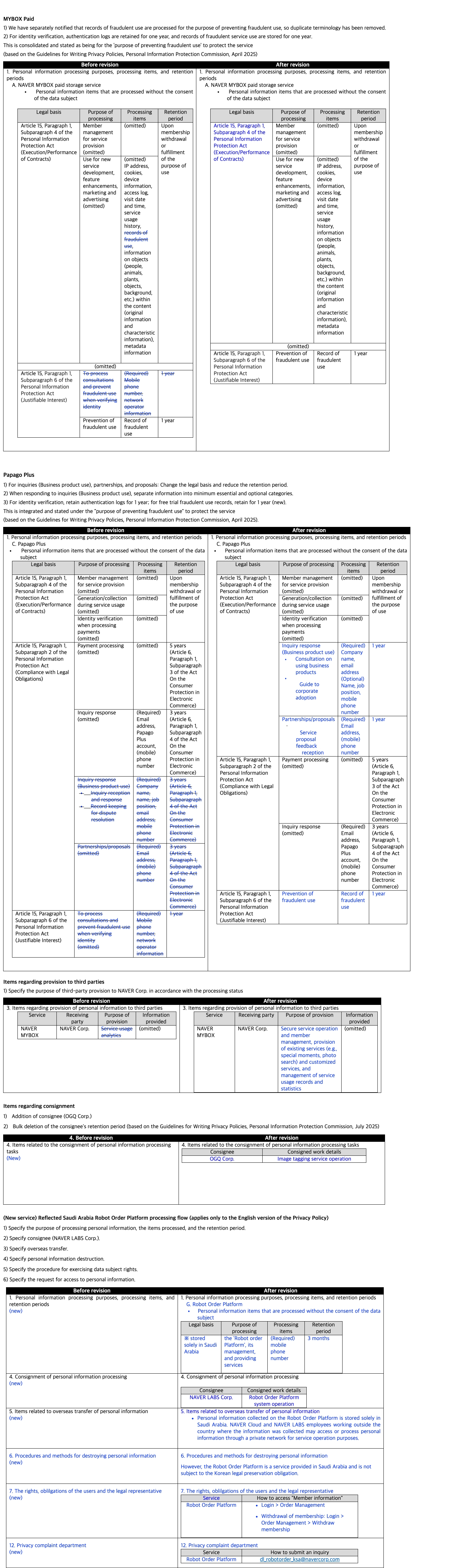 We would like to inform you of the revision of the "Service Privacy Policy" as follows.
